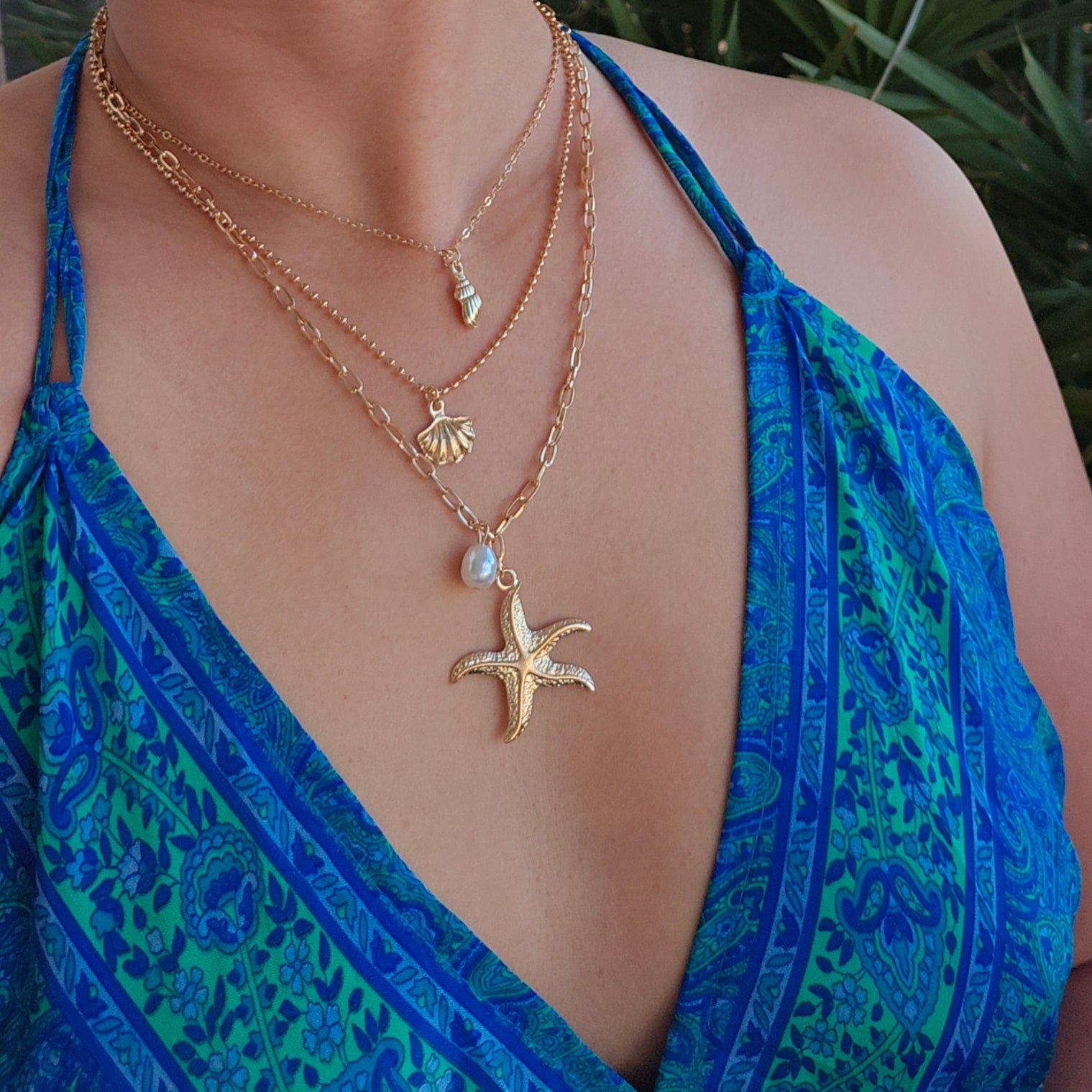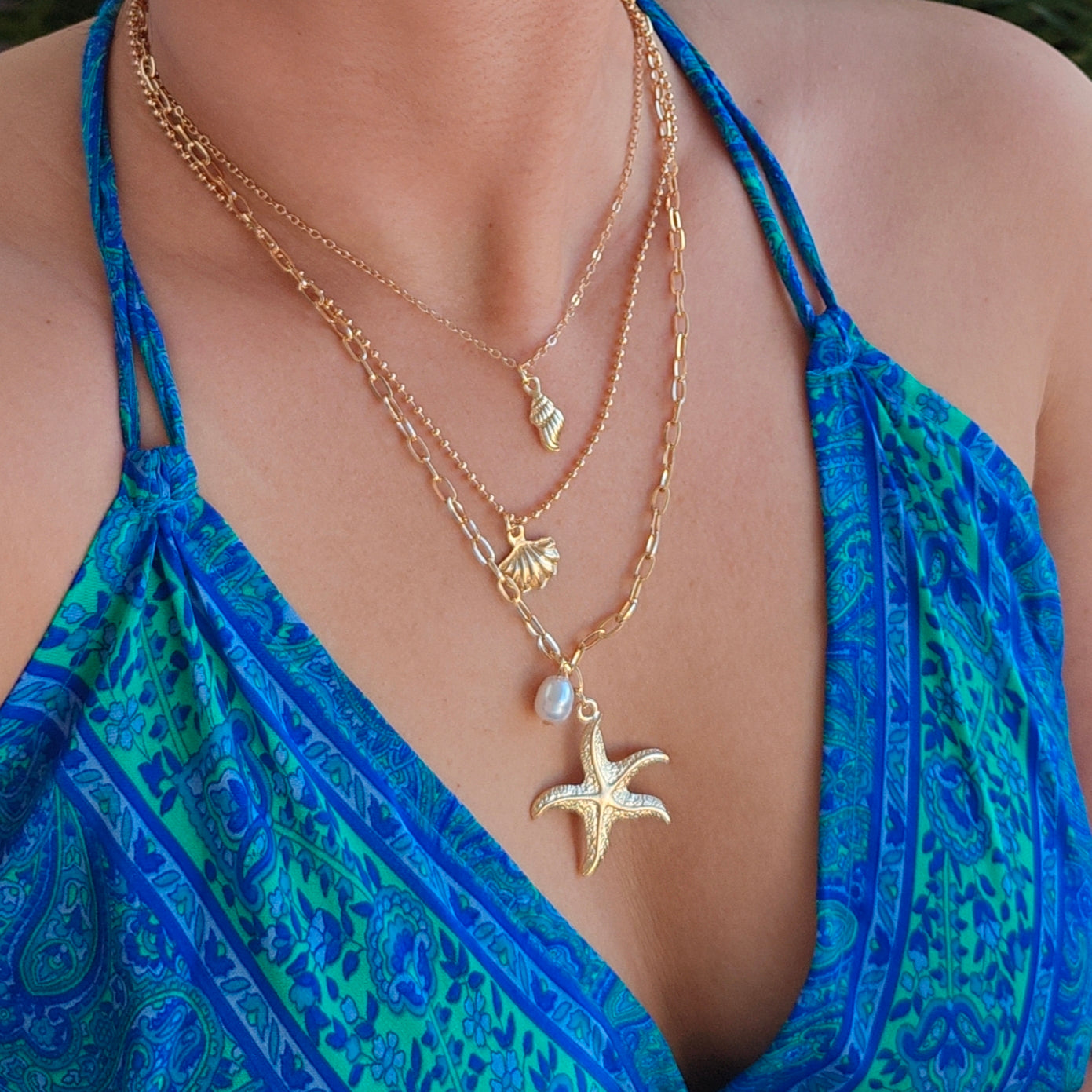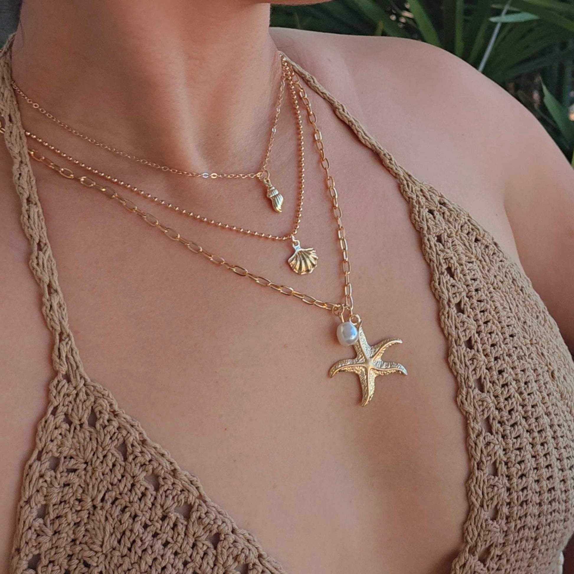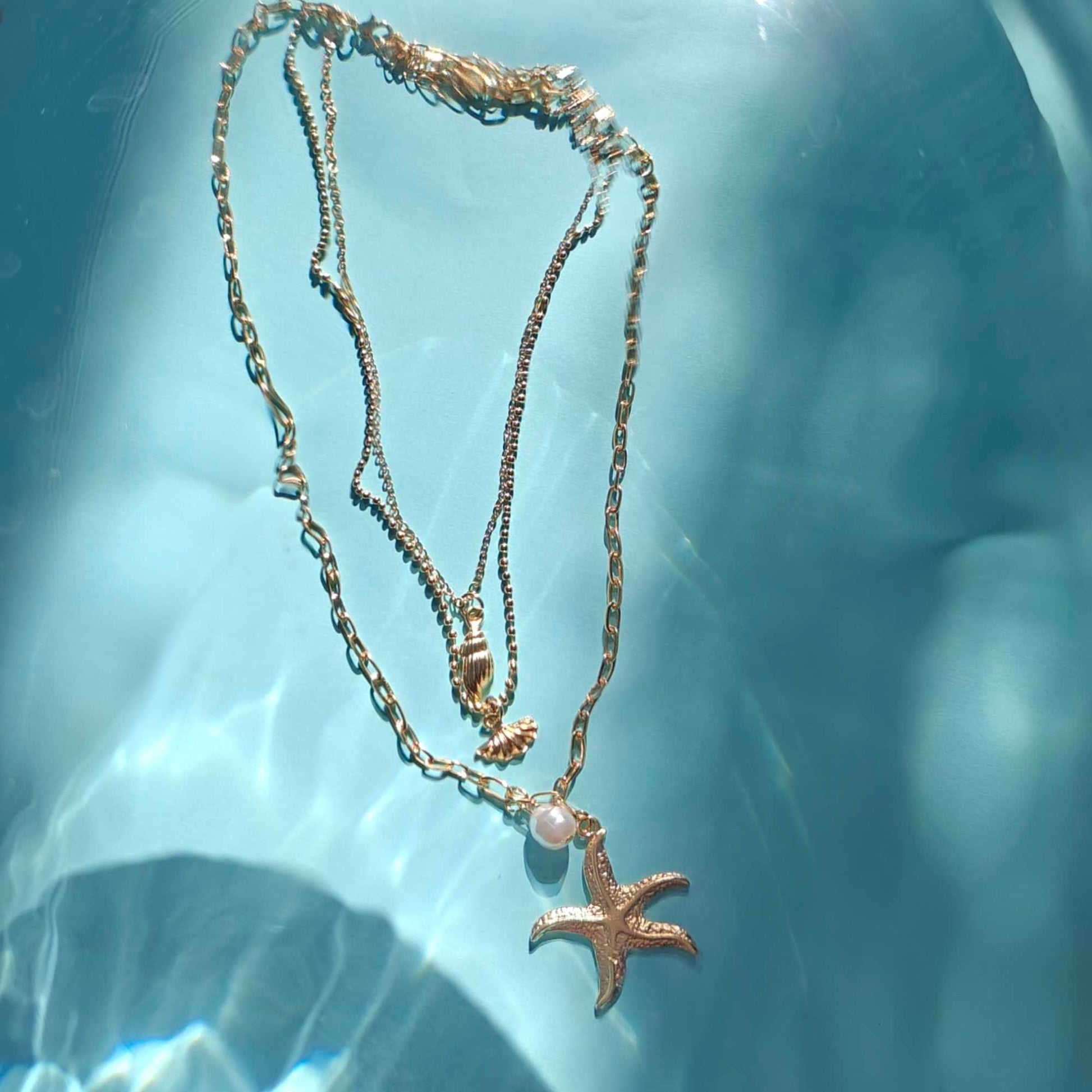 Collar ajustable de 3 cadenas en acero inoxidable en color dorado con decoraciones marinas, perfectas para dar ese toque veraniego a tu look úsalas en la playa o la piscina☀️ ya que gracias a su material resistente al agua se mantendrán brillantes durante mucho tiempo.