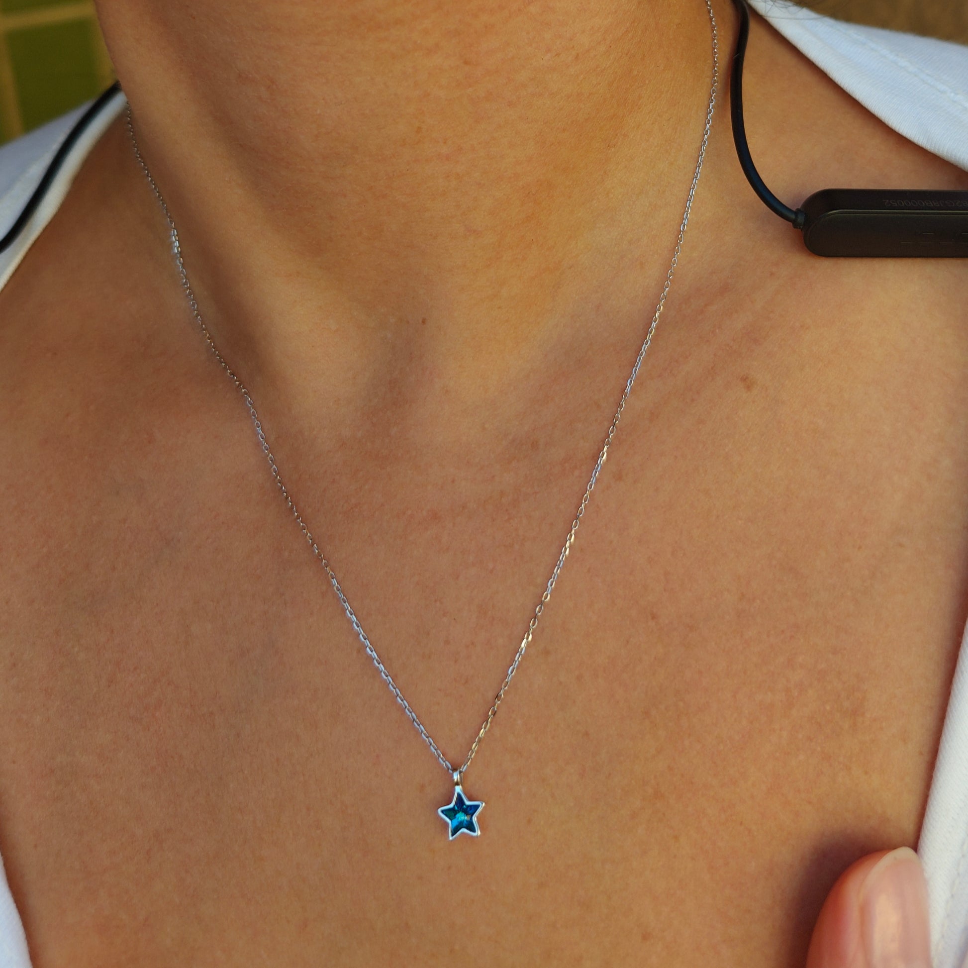 Luce la magia del cielo estrellado con el colgante Perseidas, una joya de plata S925 con fina cadena ajustable a dos largos y un elegante colgante en forma de estrella con circón azul marino. Combínalo con los pendientes y el anillo Perseidas disponibles en nuestra tienda y crea el conjunto perfecto para brillar en cualquier ocasión.