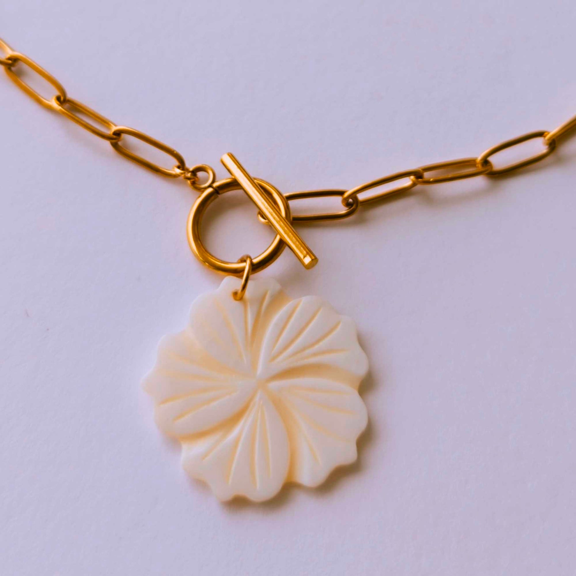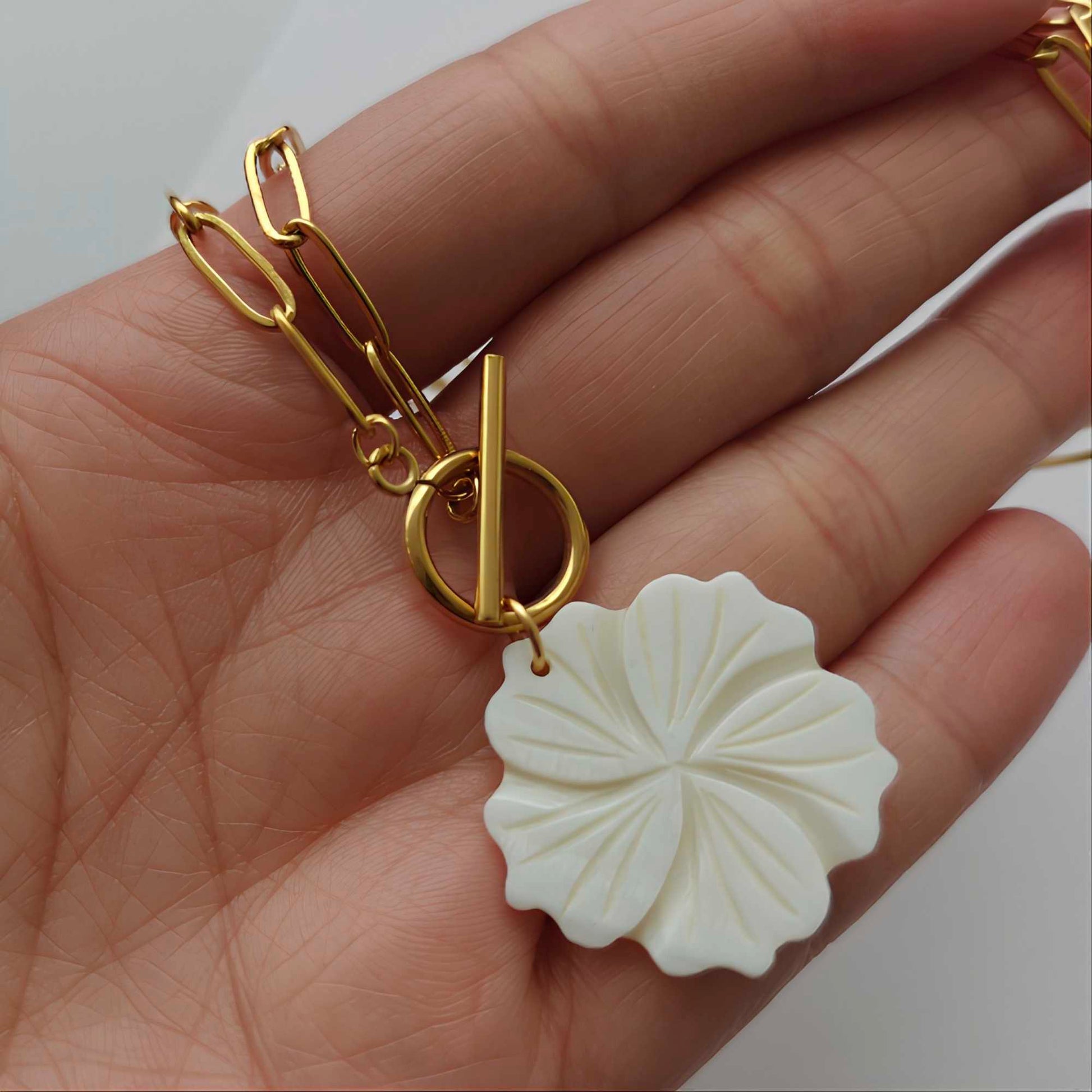 Flor blanca de nácar tallada