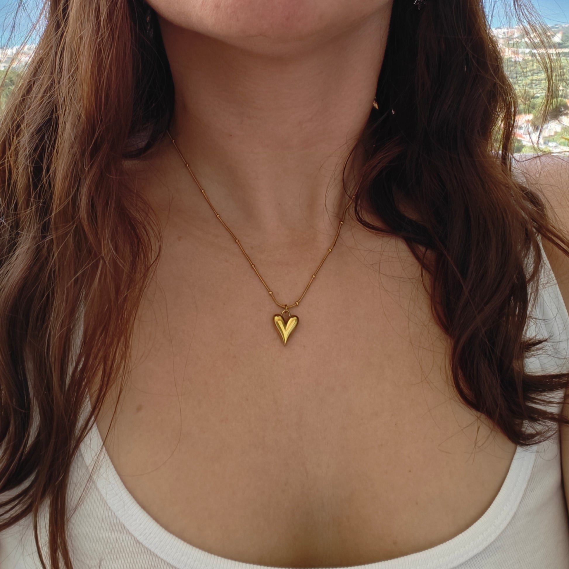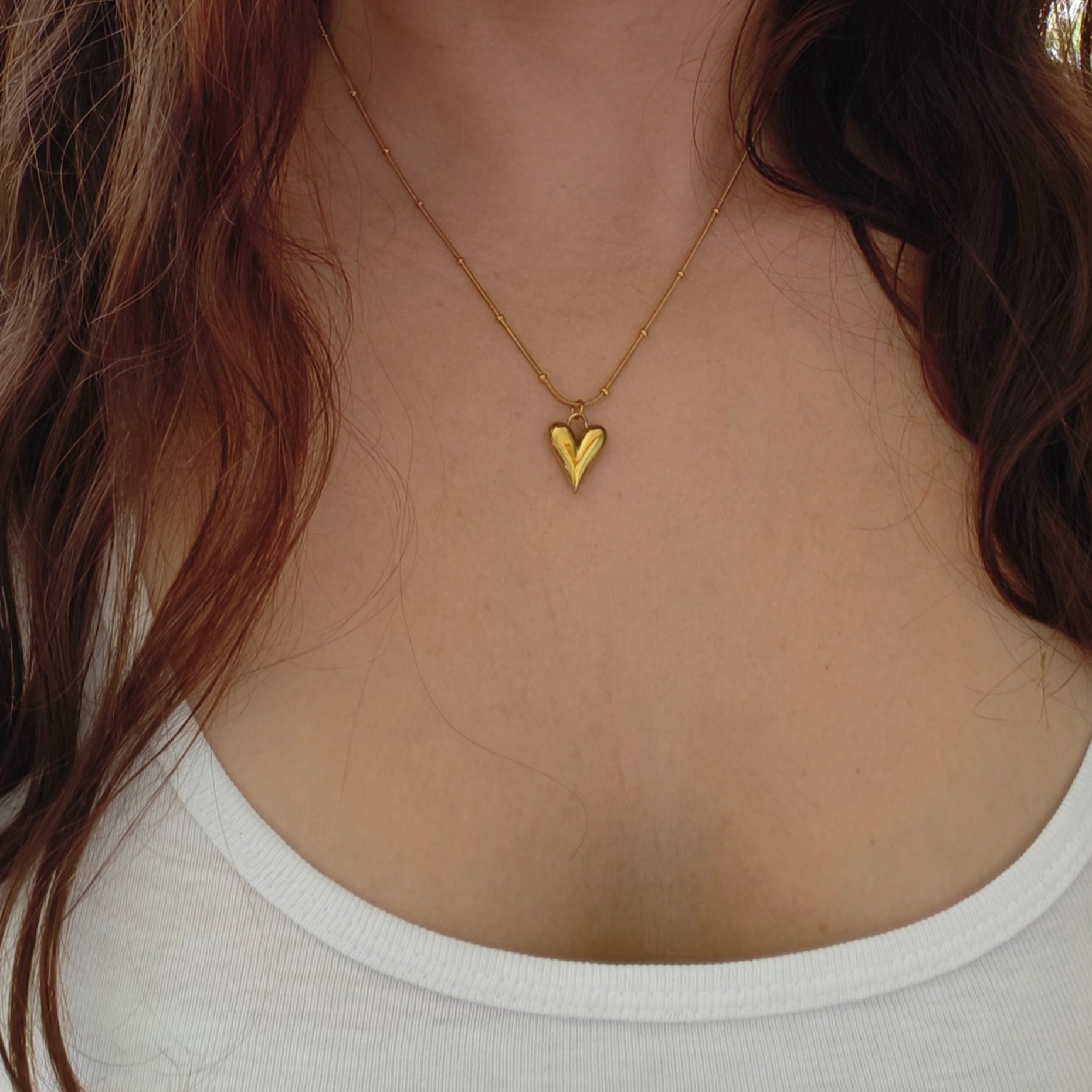 Colgante en forma de corazón pequeño y fino transmite ternura sin perder estilo, convirtiéndolo en un regalo ideal o un imprescindible en tu colección.
