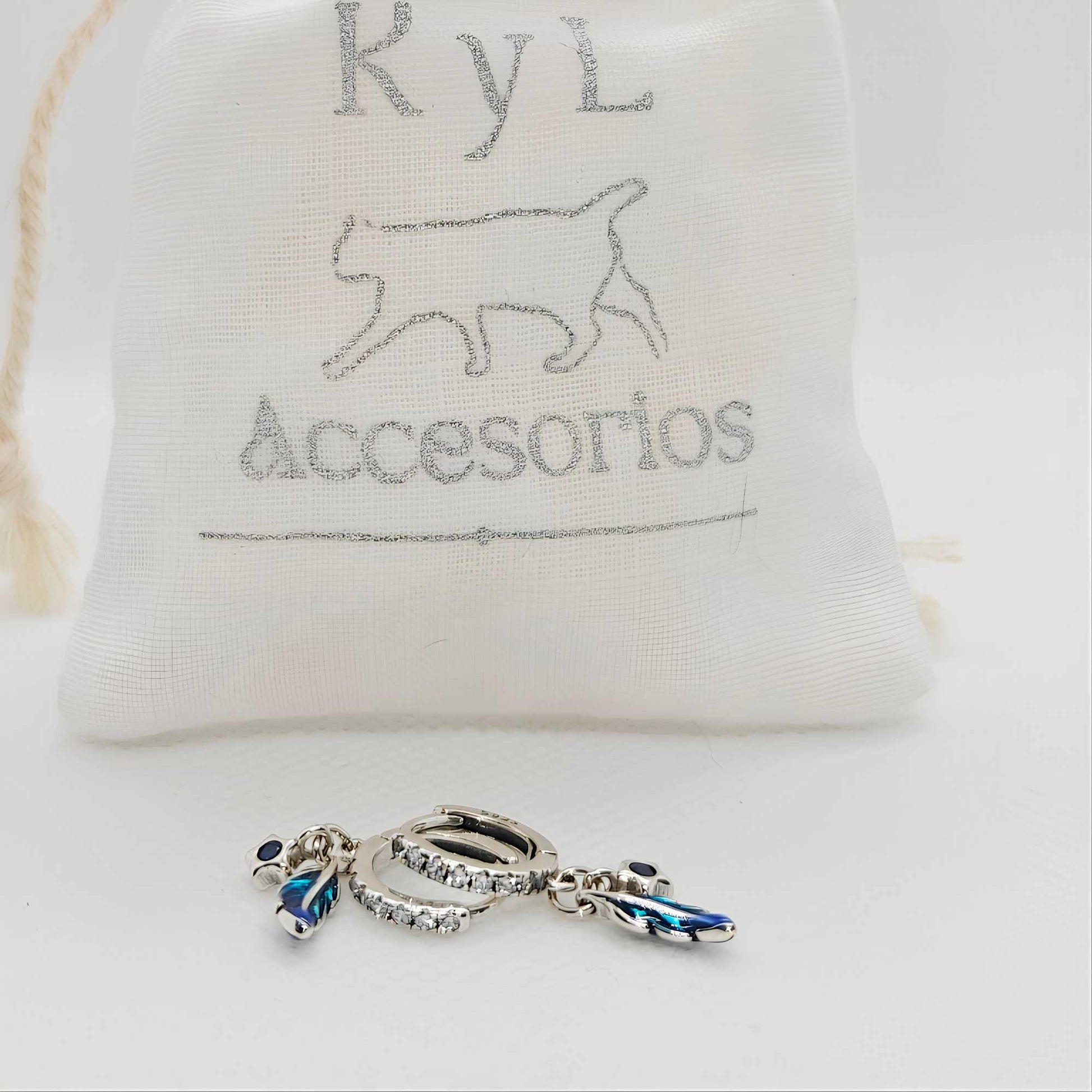Descubre la elegancia de nuestros pendientes de plata tipo aro, diseñados para realzar tu estilo con un toque de frescura y originalidad. Cada pendiente presenta una hermosa pluma lacada en tonos azules, que captura la luz con su acabado brillante, aportando un aire moderno y sofisticado a cualquier conjunto.