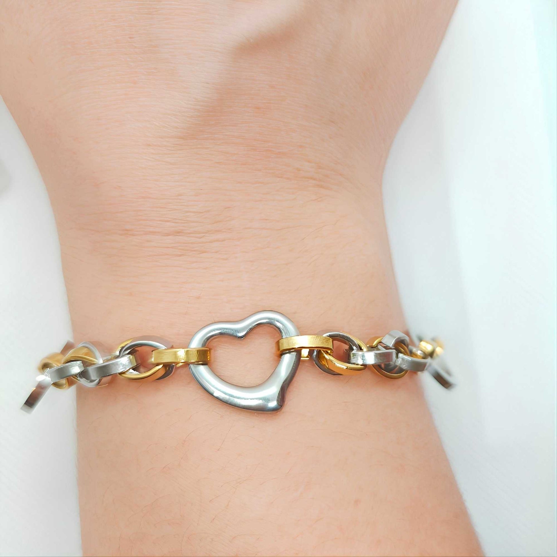 - Diseño bicolor (dorado y plateado) con un corazón central.