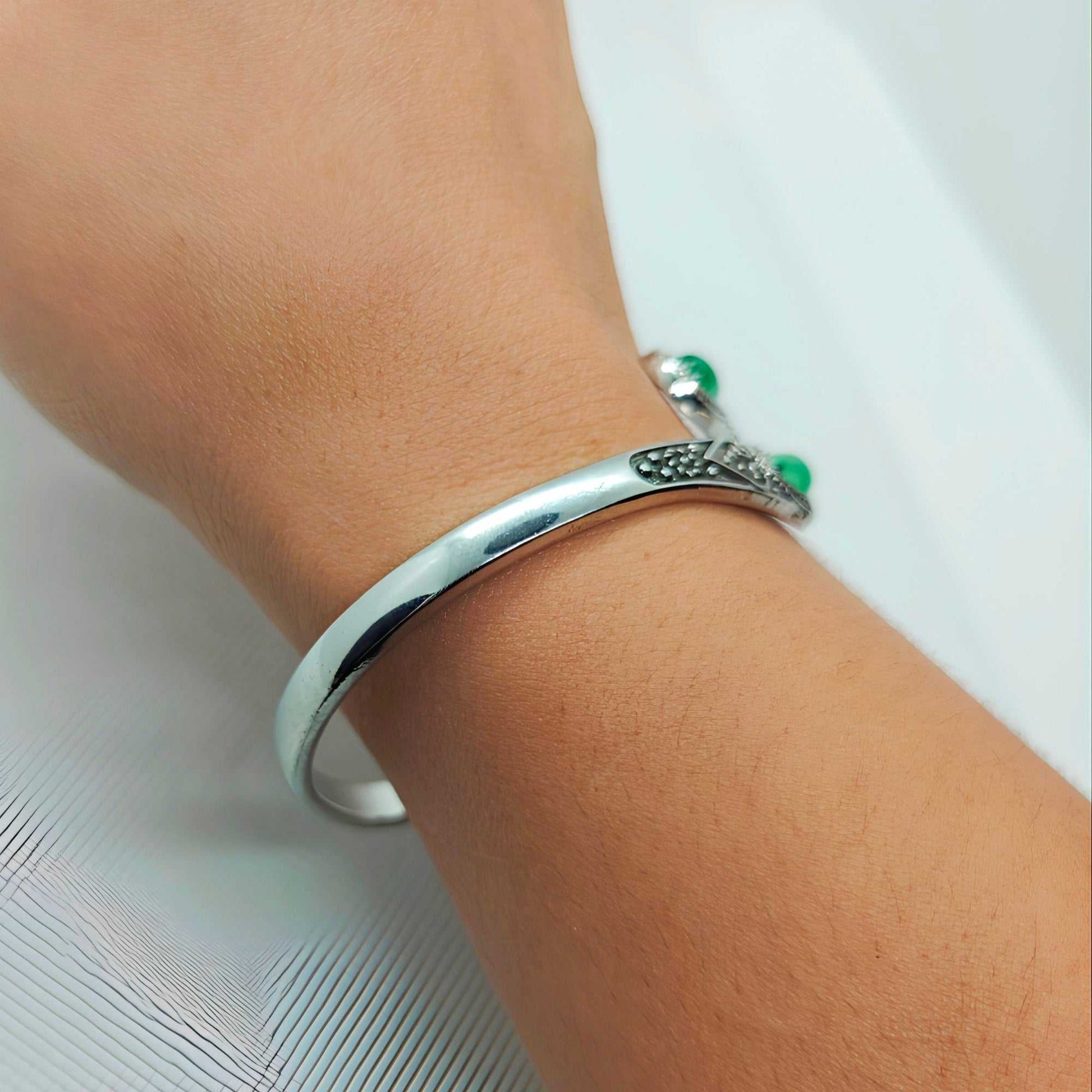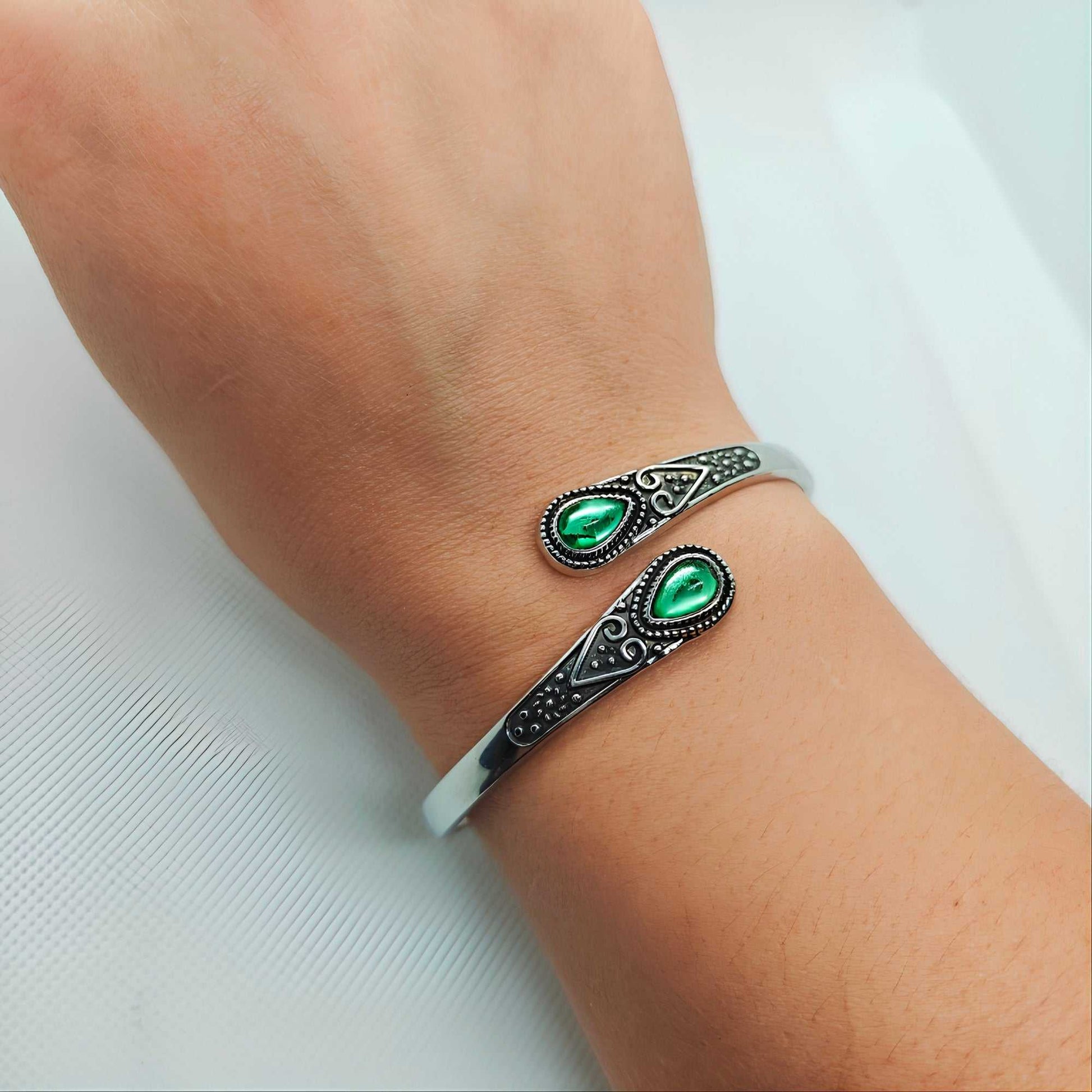 Descubre la elegancia y versatilidad del Brazalete Esencia, un accesorio de acero ajustable que se adapta a tu estilo y comodidad. Con un diseño moderno y minimalista, este brazalete presenta decoraciones en ambas puntas, realzadas con un hermoso cristal que puedes elegir en verde, negro o blanco, según tu estado de ánimo o atuendo. Perfecto para cualquier ocasión, el Brazalete Esencia es el complemento ideal para quienes buscan un toque de sofisticación y un estilo único.